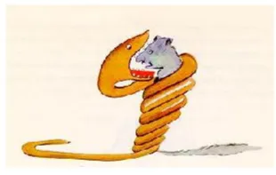In the book it said: “Boa constrictors swallow their prey whole, without chewing it. After that they are not able to move, and they sleep through the six months that they need for digestion.”